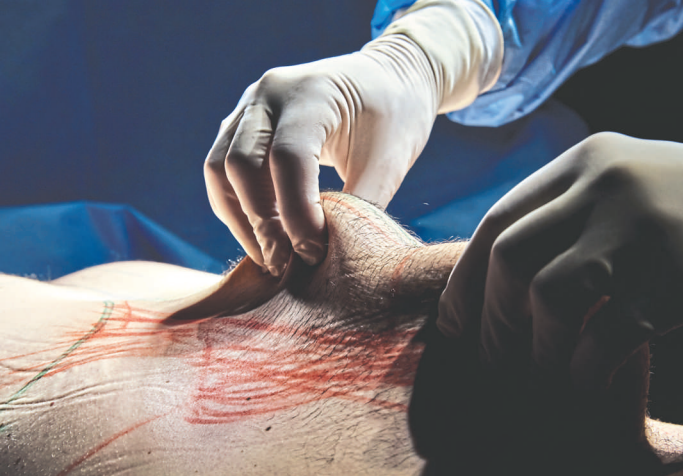 With multicolored markers, the surgeon drew the outline of a far more muscular man across Cirilo’s chest and belly.